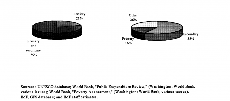 По-друге, в Україні існують дисбаланси у фінансуванні різних ланок освіти, які історично склались ще в радянські часи. Зокрема, мова йде про відносно низьку питому вагу витрат на загальну середню освіту.