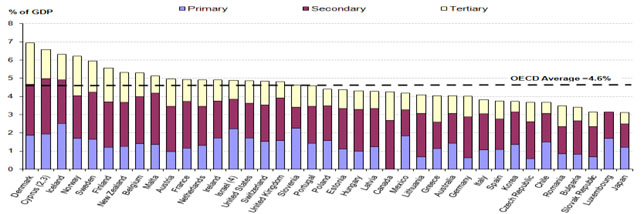 Public Expenditure on Education by level, per cent of GDP, 2007