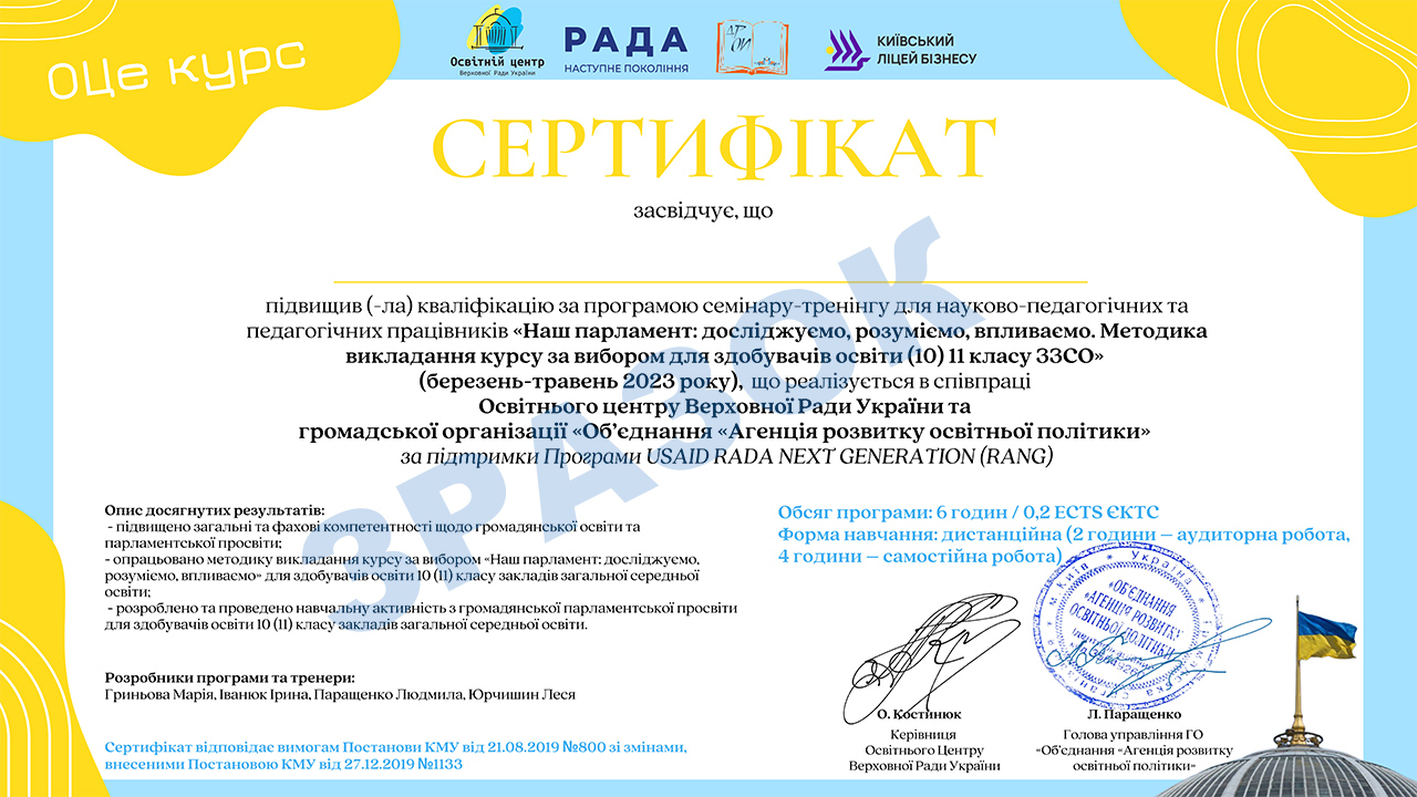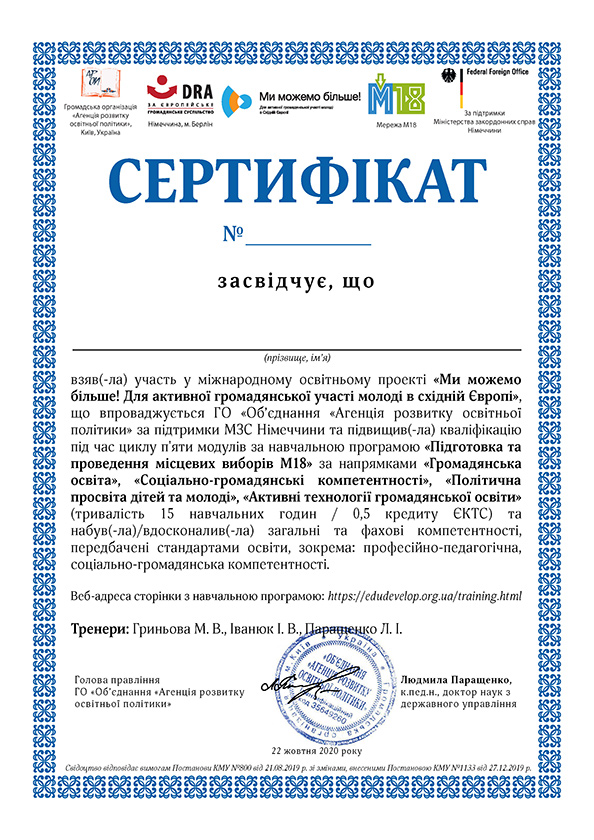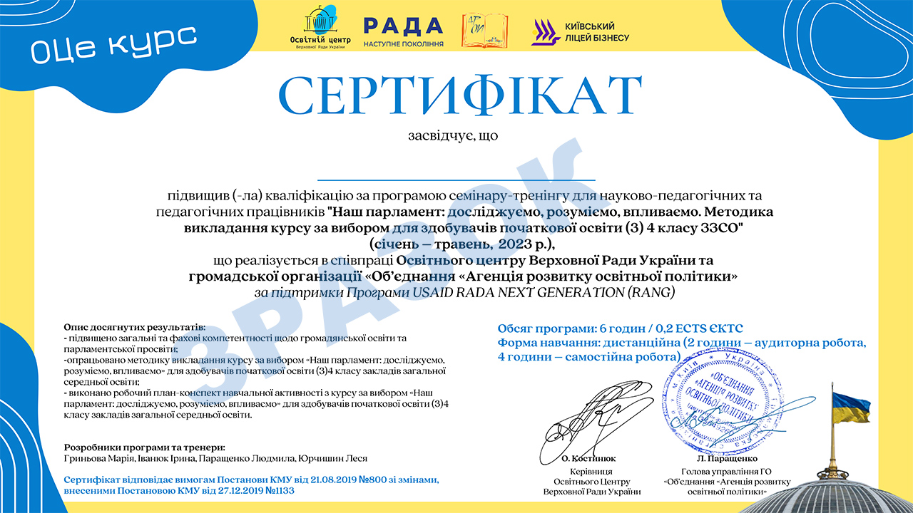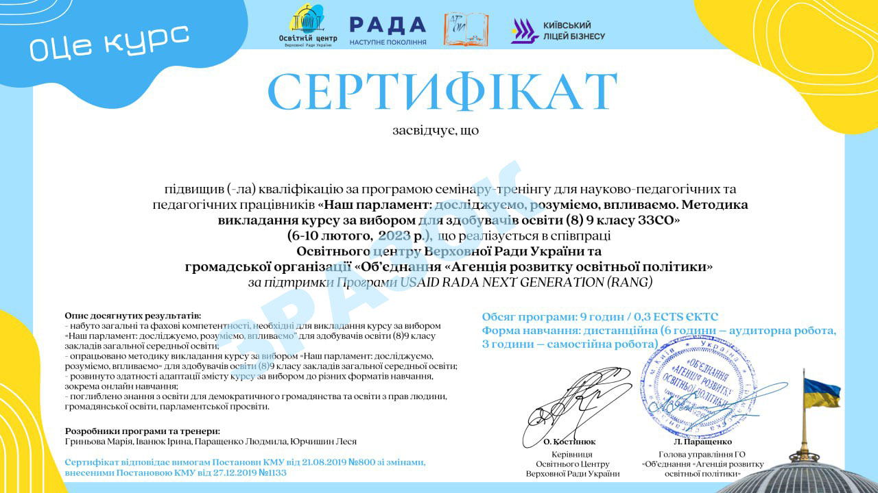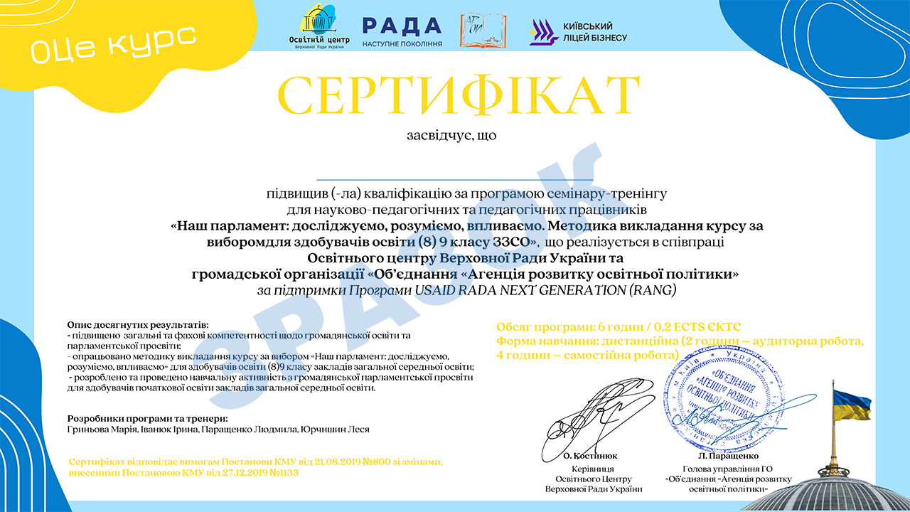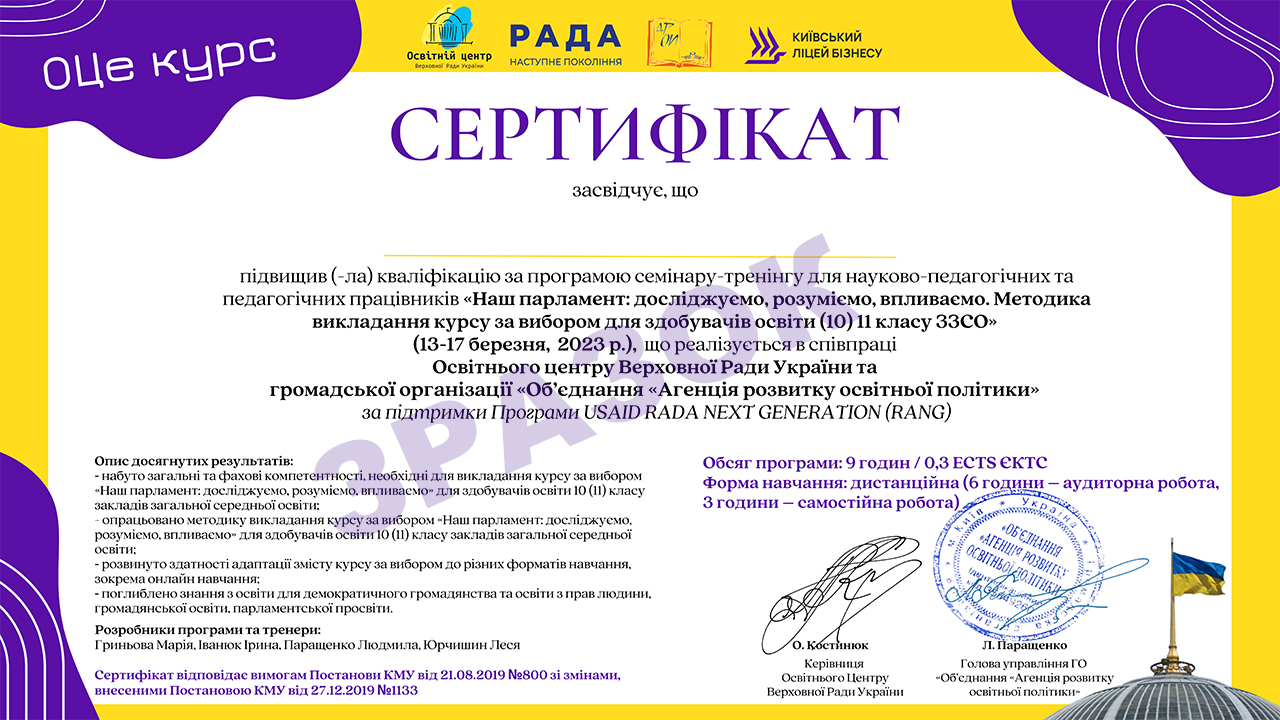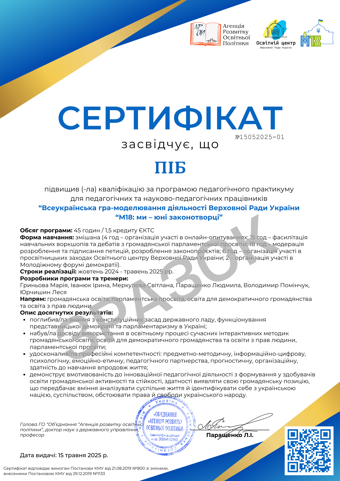 Програма підвищення кваліфікації педагогічних працівників (за видом освітньої послуги «МЕТОДИЧНИЙ ТРЕНІНГ») Модерація учнівських партисипативних проєктів у цифровому просторі | |