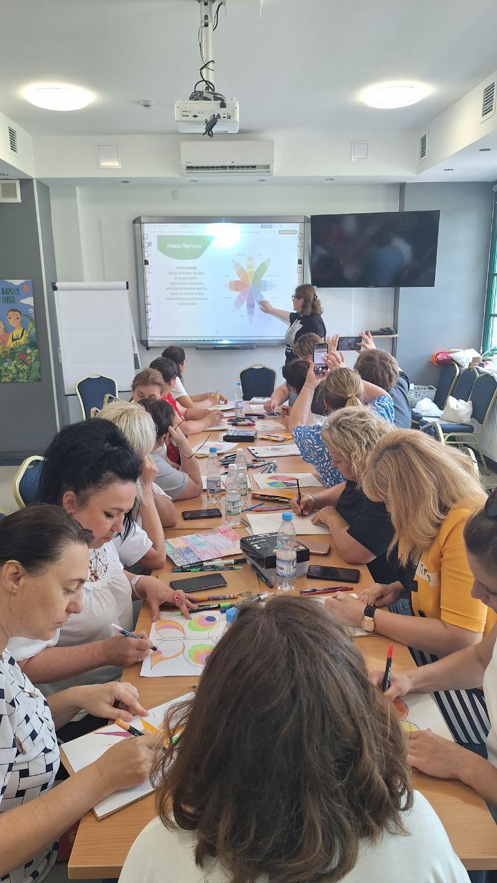 5 днів були присвячені темам розвитку стійкості педагогів, обговоренню методики Basic PH та вправ на виявлення власних ресурсів, діагностики та реагуванню на травму. Учасниці вивчали ознаки гострих і хронічних травм, навчалися алгоритмів надання першої психологічної допомоги та травмочутливому ставленню до дітей, а також практикували майндфулнес, арт‑терапію та роботу з метафоричними картами "Happy cards" — методами, спрямованими на розвиток емоційної регуляції. Крім того, було окреслено надважливі теми накшталт робота з батьківськими запитами та ефективній комунікації з батьками, визначенню меж відповідальності педагогів і практичній роботі в колі емпатії, з фінальним врученням сертифікатів учасників.
